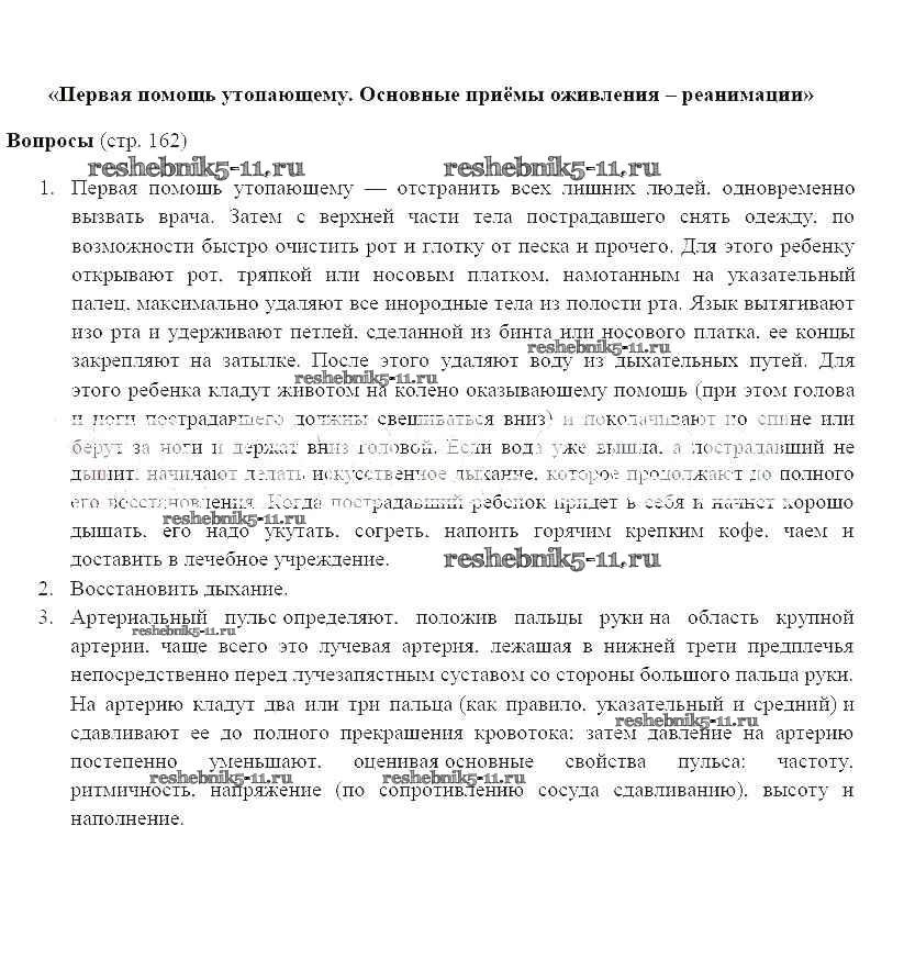 Готовая домашняя работа с ответами по ОБЖ за 6 класс Фролов, Шолох, Юрьева, Мишин Учебник Дрофа 2017 ФГОС - Страницы 162