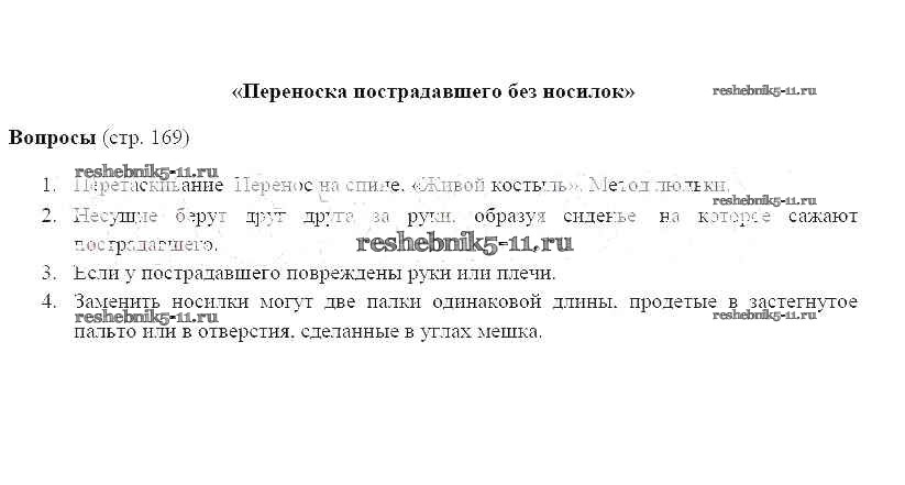 Готовая домашняя работа с ответами по ОБЖ за 6 класс Фролов, Шолох, Юрьева, Мишин Учебник Дрофа 2017 ФГОС - Страницы 169