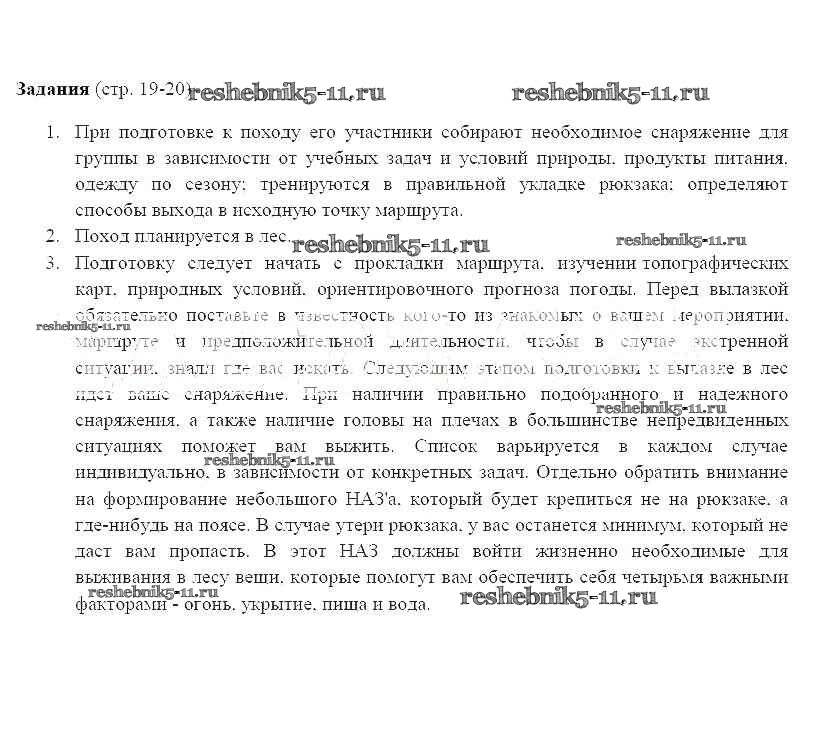 Готовая домашняя работа с ответами по ОБЖ за 6 класс Фролов, Шолох, Юрьева, Мишин Учебник Дрофа 2017 ФГОС - Страницы 19-20