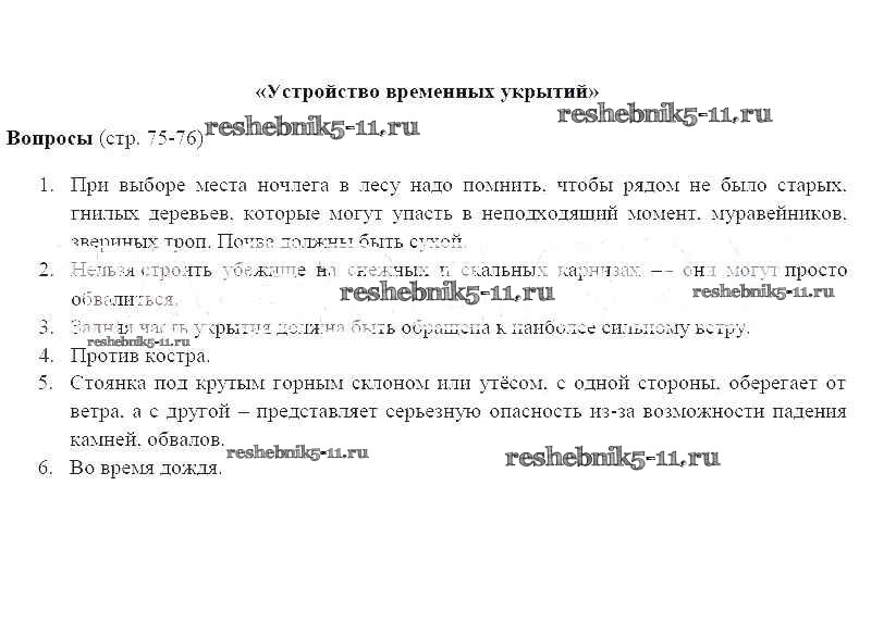 Готовая домашняя работа с ответами по ОБЖ за 6 класс Фролов, Шолох, Юрьева, Мишин Учебник Дрофа 2017 ФГОС - Страницы 75-76
