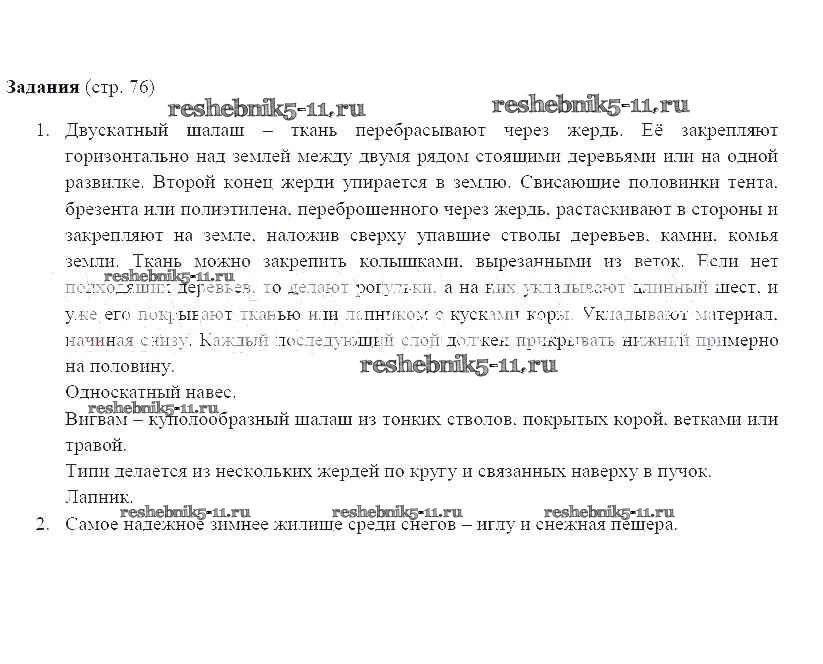Готовая домашняя работа с ответами по ОБЖ за 6 класс Фролов, Шолох, Юрьева, Мишин Учебник Дрофа 2017 ФГОС - Страницы 76