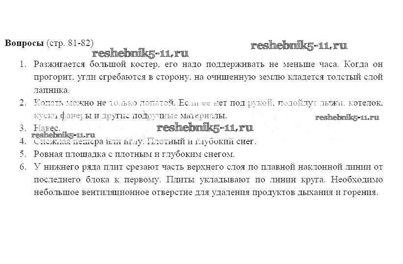 Готовая домашняя работа с ответами по ОБЖ за 6 класс Фролов, Шолох, Юрьева, Мишин Учебник Дрофа 2017 ФГОС - Страницы 81-82