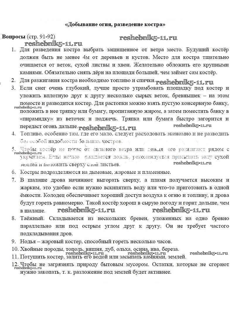Готовая домашняя работа с ответами по ОБЖ за 6 класс Фролов, Шолох, Юрьева, Мишин Учебник Дрофа 2017 ФГОС - Страницы 91-92