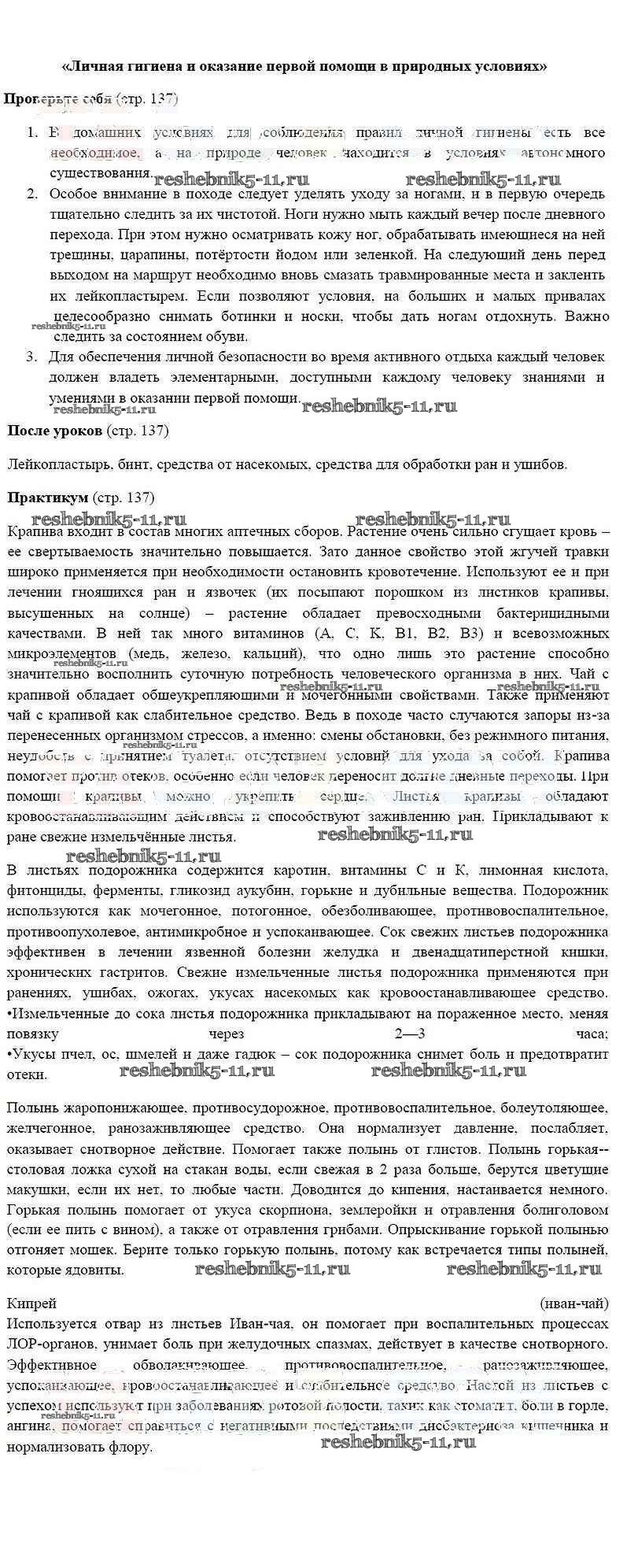 Готовая домашняя работа с ответами по ОБЖ за 6 класс Смирнов, Хренников Учебник Просвещение 2018 ФГОС - Страницы 137