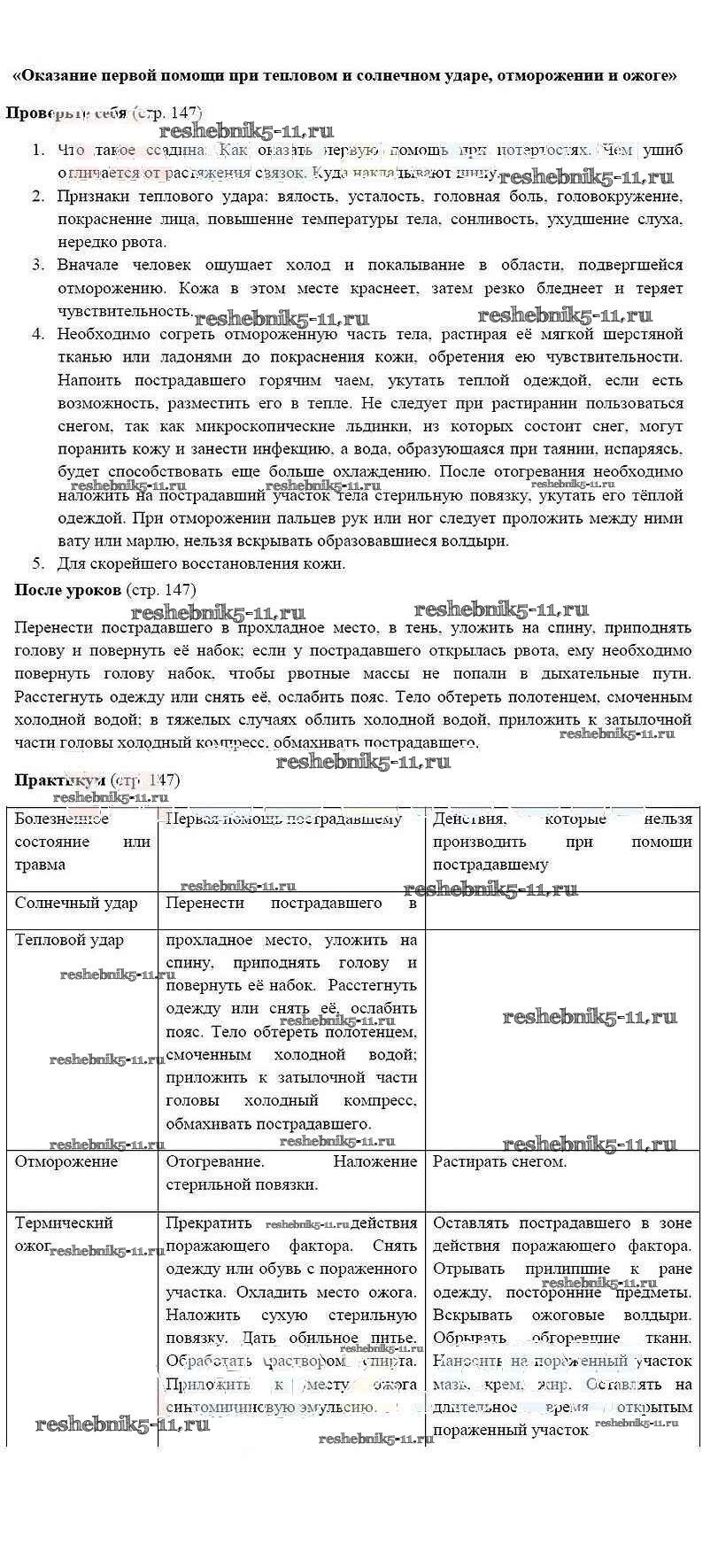 Готовая домашняя работа с ответами по ОБЖ за 6 класс Смирнов, Хренников Учебник Просвещение 2018 ФГОС - Страницы 147