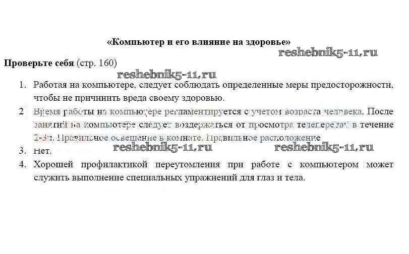 Готовая домашняя работа с ответами по ОБЖ за 6 класс Смирнов, Хренников Учебник Просвещение 2018 ФГОС - Страницы 160