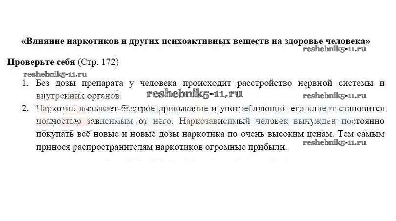 Готовая домашняя работа с ответами по ОБЖ за 6 класс Смирнов, Хренников Учебник Просвещение 2018 ФГОС - Страницы 172