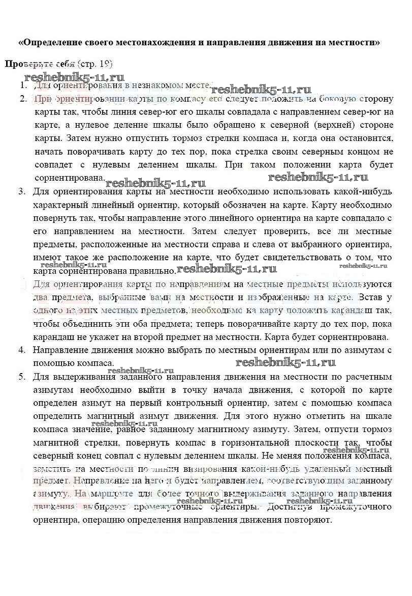 Готовая домашняя работа с ответами по ОБЖ за 6 класс Смирнов, Хренников Учебник Просвещение 2018 ФГОС - Страницы 19
