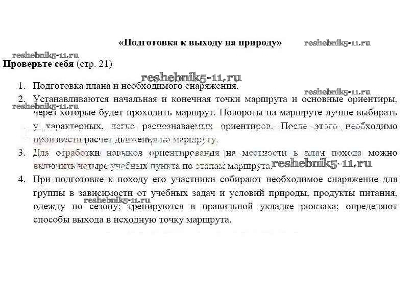 Готовая домашняя работа с ответами по ОБЖ за 6 класс Смирнов, Хренников Учебник Просвещение 2018 ФГОС - Страницы 21