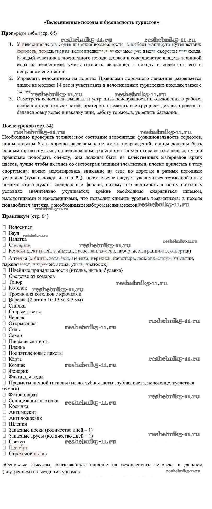 Готовая домашняя работа с ответами по ОБЖ за 6 класс Смирнов, Хренников Учебник Просвещение 2018 ФГОС - Страницы 64