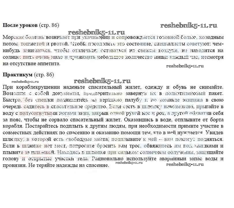 Готовая домашняя работа с ответами по ОБЖ за 6 класс Смирнов, Хренников Учебник Просвещение 2018 ФГОС - Страницы 86