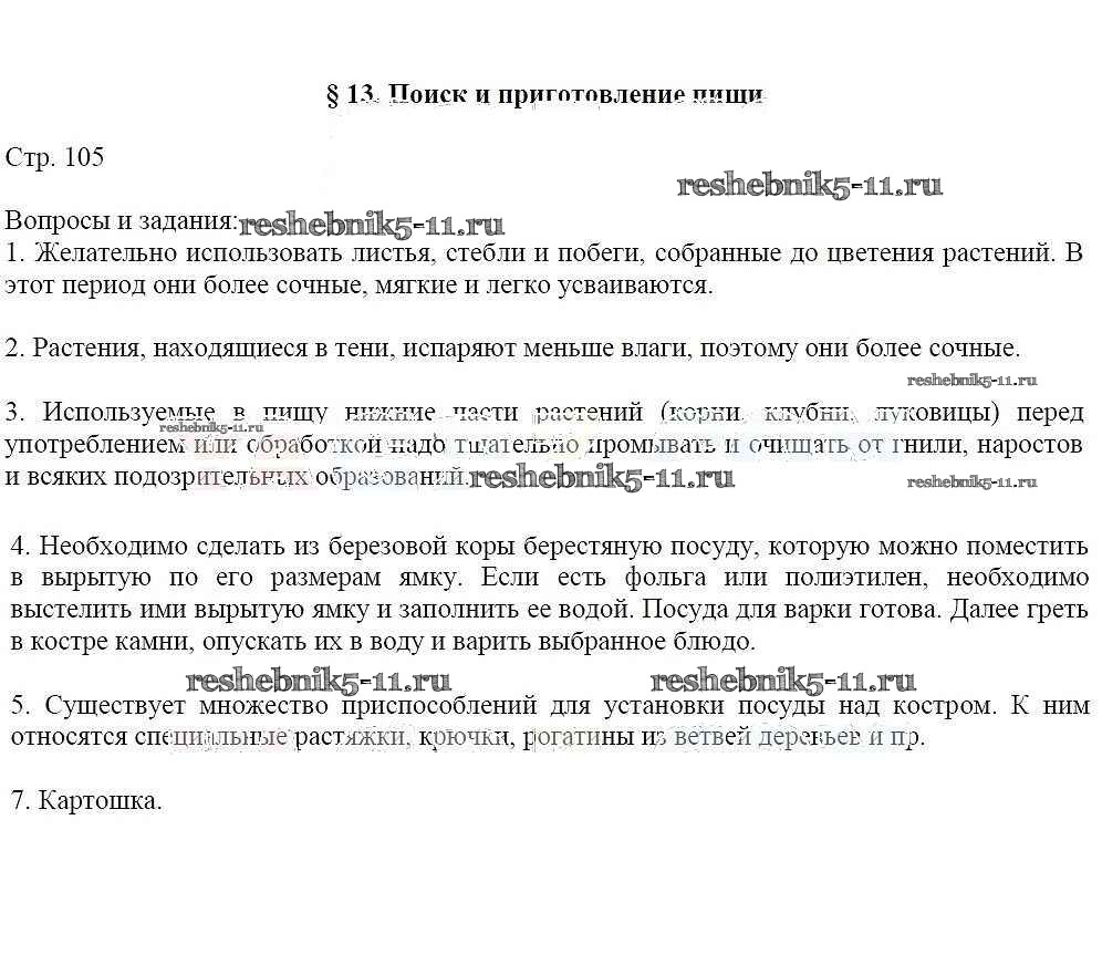 Готовая домашняя работа с ответами по ОБЖ за 6 класс Маслов, Марков, Латчук, Кузнецов Учебник Вертикаль Дрофа 2018 ФГОС - Страницы 105