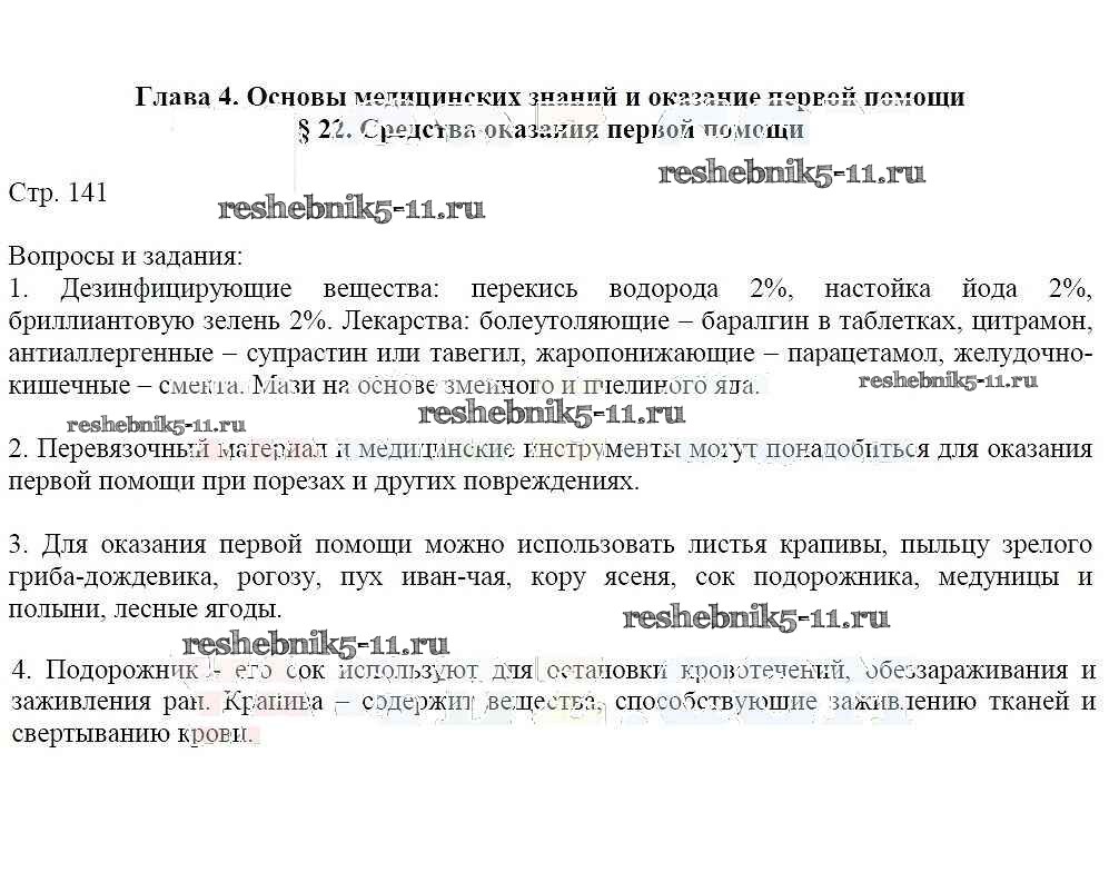 Готовая домашняя работа с ответами по ОБЖ за 6 класс Маслов, Марков, Латчук, Кузнецов Учебник Вертикаль Дрофа 2018 ФГОС - Страницы 141