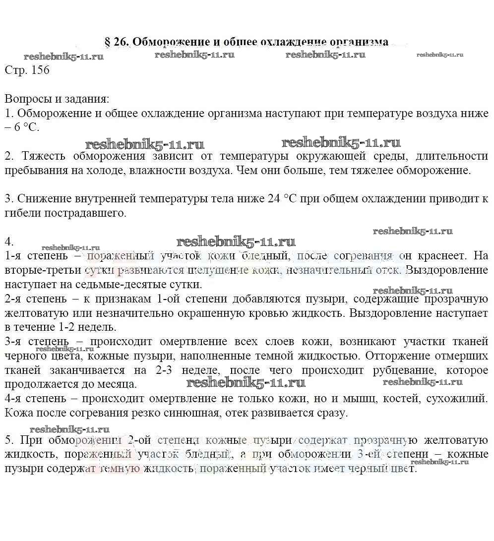 Готовая домашняя работа с ответами по ОБЖ за 6 класс Маслов, Марков, Латчук, Кузнецов Учебник Вертикаль Дрофа 2018 ФГОС - Страницы 156