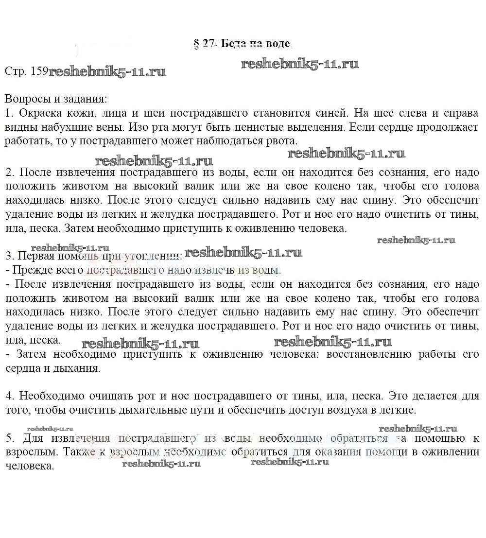 Готовая домашняя работа с ответами по ОБЖ за 6 класс Маслов, Марков, Латчук, Кузнецов Учебник Вертикаль Дрофа 2018 ФГОС - Страницы 159