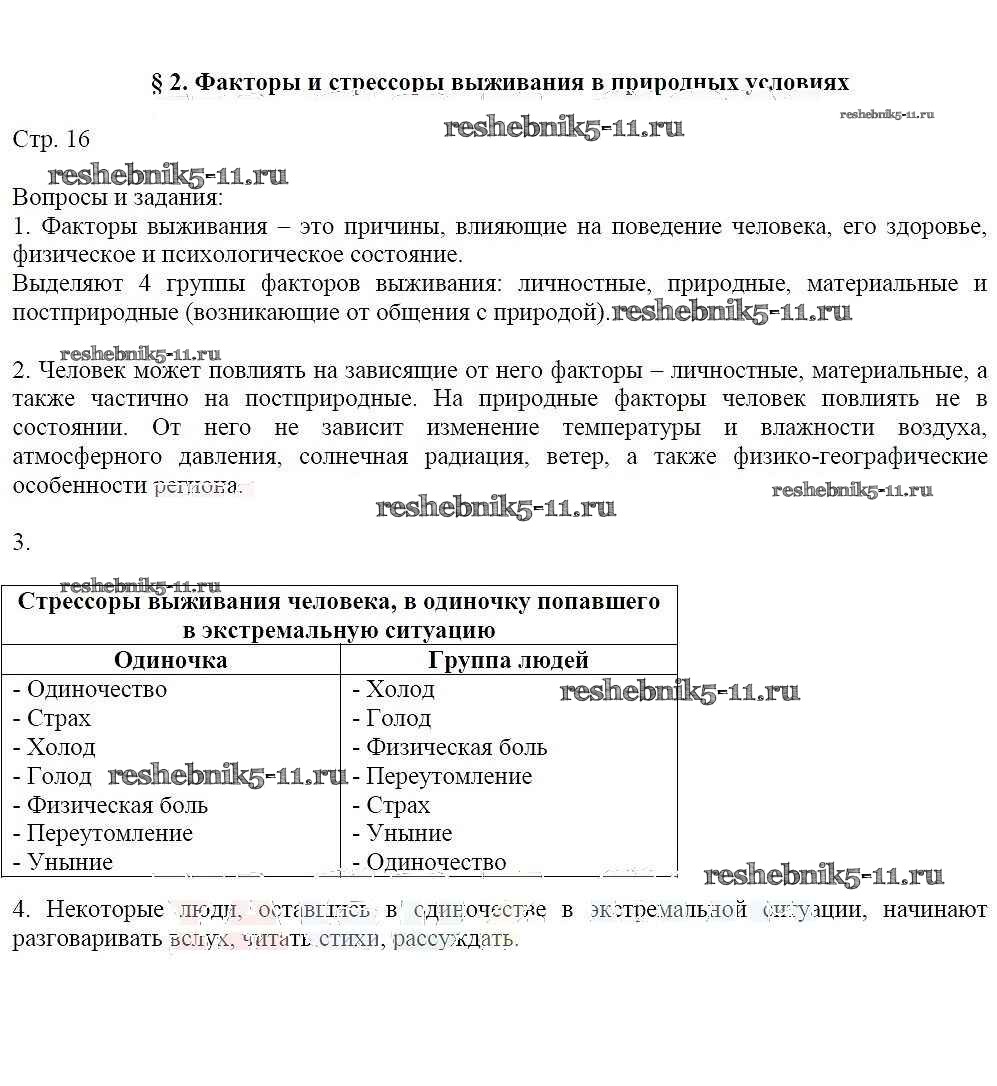 Готовая домашняя работа с ответами по ОБЖ за 6 класс Маслов, Марков, Латчук, Кузнецов Учебник Вертикаль Дрофа 2018 ФГОС - Страницы 16