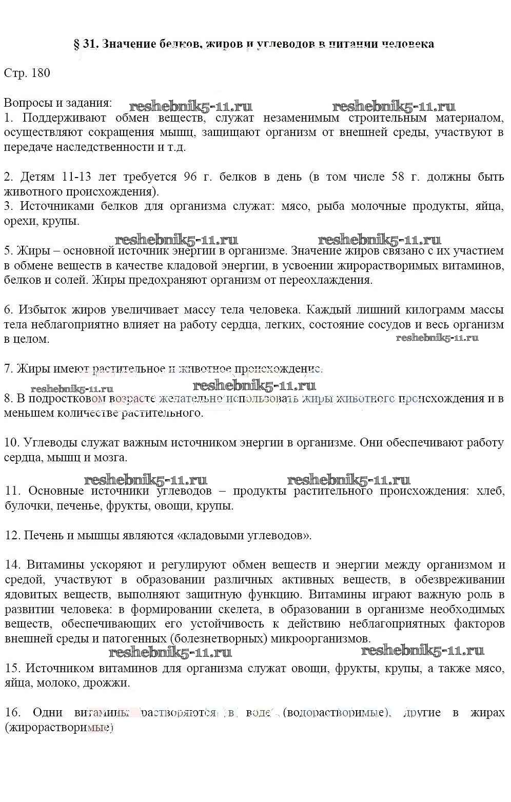 Готовая домашняя работа с ответами по ОБЖ за 6 класс Маслов, Марков, Латчук, Кузнецов Учебник Вертикаль Дрофа 2018 ФГОС - Страницы 180