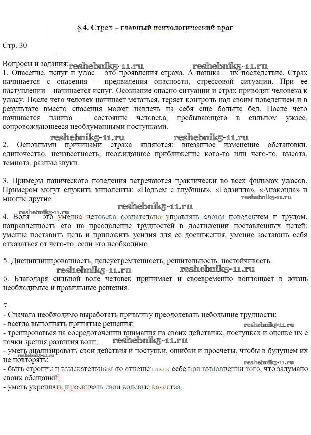 Готовая домашняя работа с ответами по ОБЖ за 6 класс Маслов, Марков, Латчук, Кузнецов Учебник Вертикаль Дрофа 2018 ФГОС - Страницы 30
