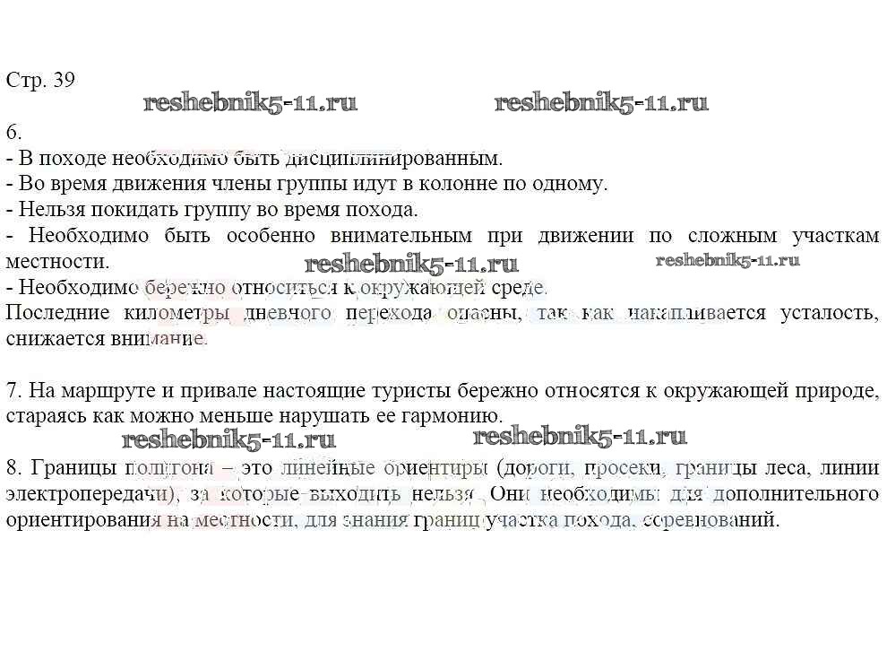Готовая домашняя работа с ответами по ОБЖ за 6 класс Маслов, Марков, Латчук, Кузнецов Учебник Вертикаль Дрофа 2018 ФГОС - Страницы 39