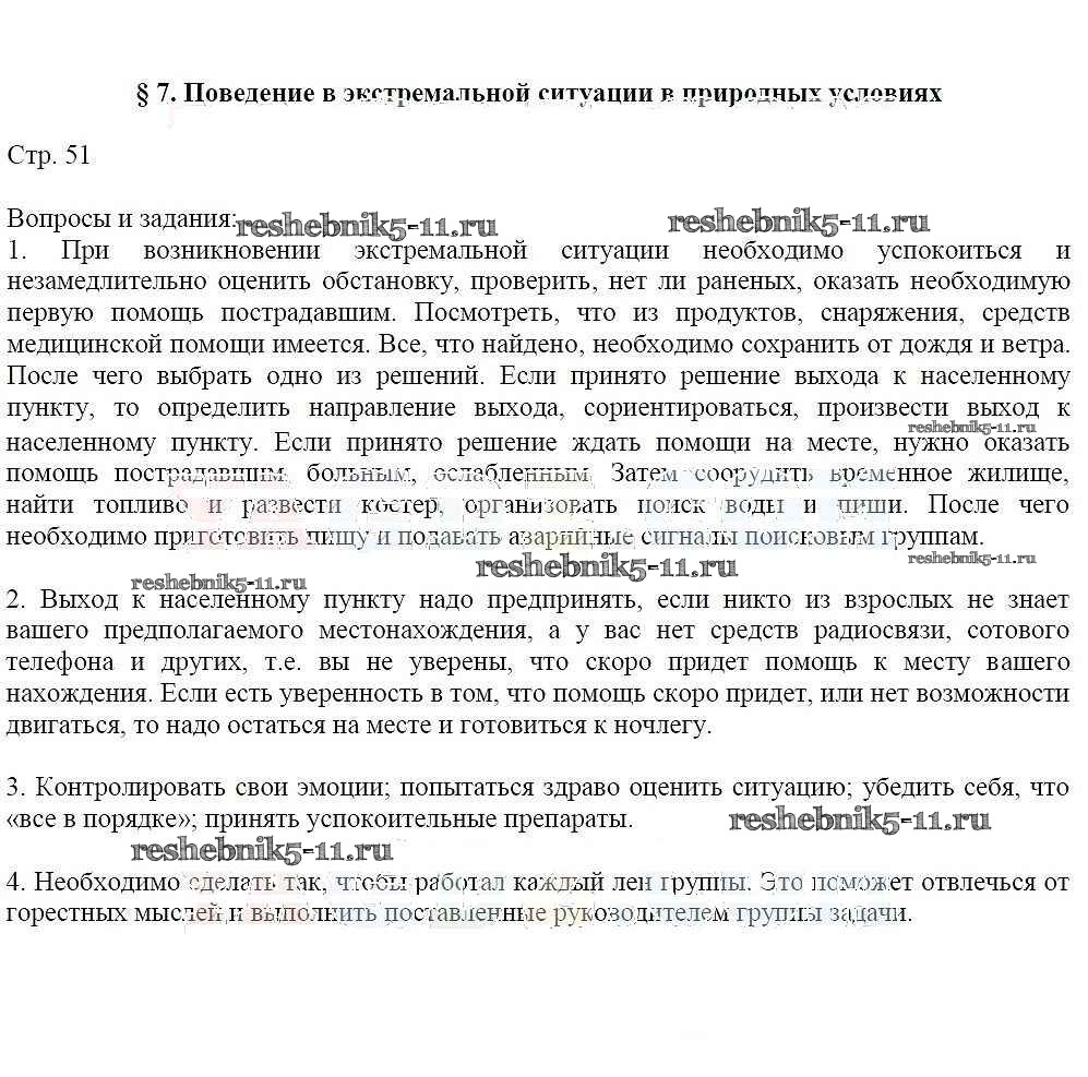 Готовая домашняя работа с ответами по ОБЖ за 6 класс Маслов, Марков, Латчук, Кузнецов Учебник Вертикаль Дрофа 2018 ФГОС - Страницы 51