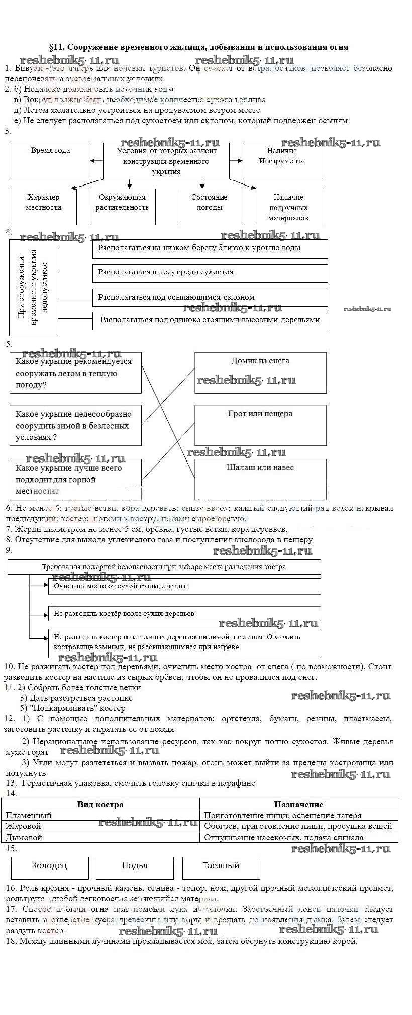 ОБЖ за 6 класс Латчук Рабочая тетрадь Вертикаль Дрофа параграф §11