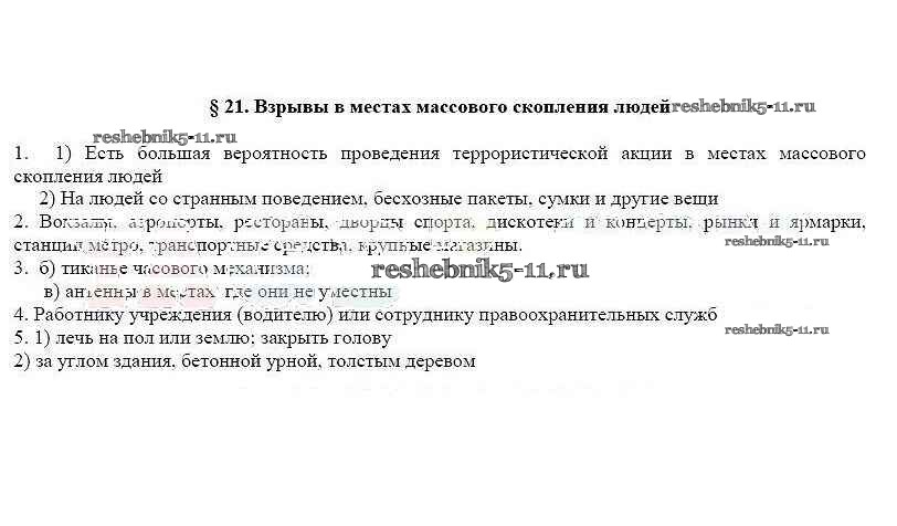 Готовая домашняя работа с ответами по ОБЖ за 6 класс Латчук, Миронов, Бурдакова Рабочая тетрадь Вертикаль Дрофа 2017 ФГОС - Параграфы §21