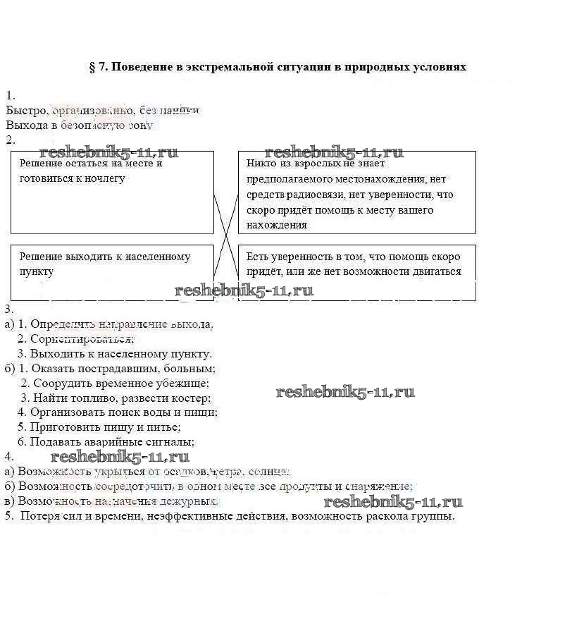 ОБЖ за 6 класс Латчук Рабочая тетрадь Вертикаль Дрофа параграф §7