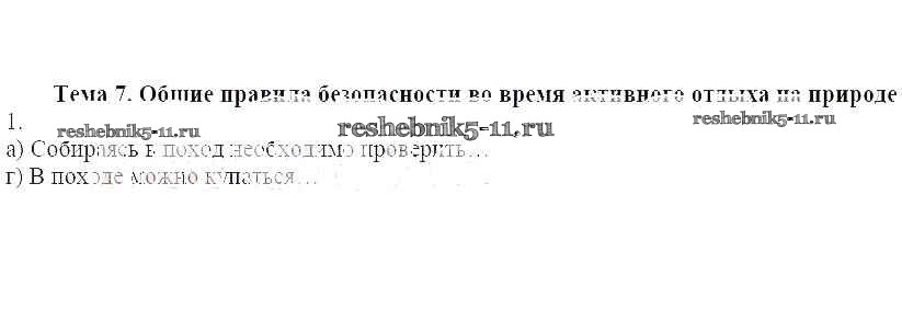 Готовая домашняя работа с ответами по ОБЖ за 6 класс Демидов Рабочая тетрадь Лицей 2016 - Тема 7. Общие правила безопасности во время активного отдыха на природе 1