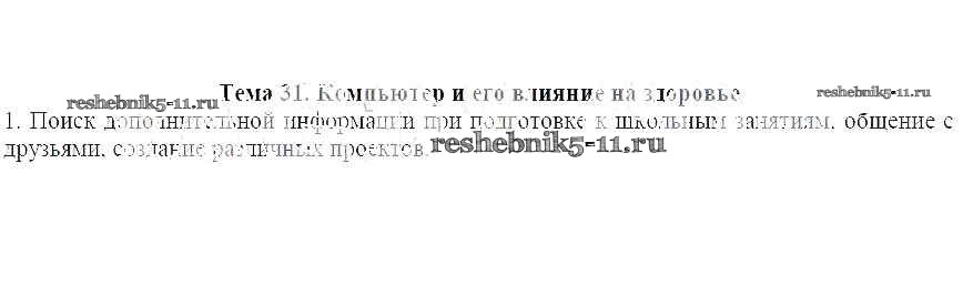 Готовая домашняя работа с ответами по ОБЖ за 6 класс Демидов Рабочая тетрадь Лицей 2016 - Тема 31. Компьютер и его влияние на здоровье 1