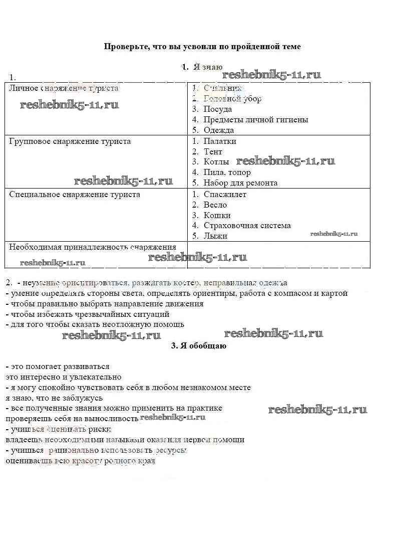 Готовая домашняя работа с ответами по ОБЖ за 6 класс Смирнов, Хренников Рабочая тетрадь Просвещение 2016 ФГОС - Глава 1 Проверьте свои знания