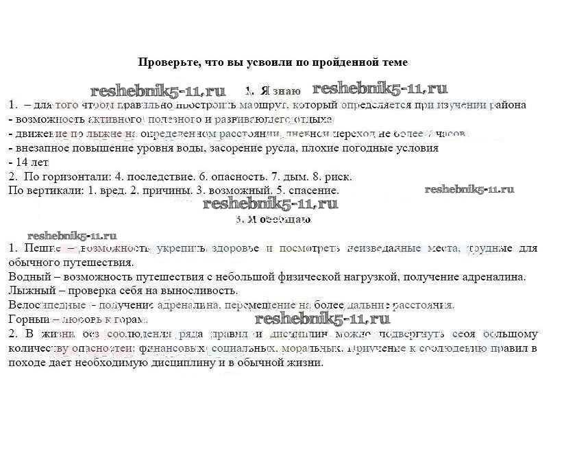 ОБЖ за 6 класс Смирнов Рабочая тетрадь Просвещение глава 2 Проверьте свои знания