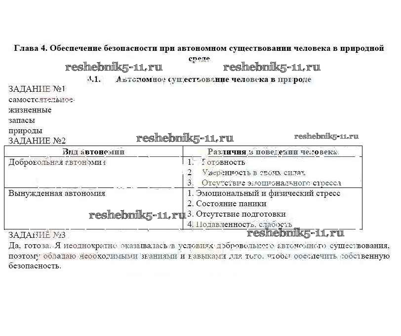 Готовая домашняя работа с ответами по ОБЖ за 6 класс Смирнов, Хренников Рабочая тетрадь Просвещение 2016 ФГОС - Глава 4 4.1
