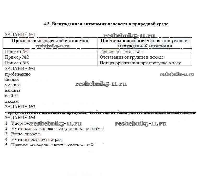 Готовая домашняя работа с ответами по ОБЖ за 6 класс Смирнов, Хренников Рабочая тетрадь Просвещение 2016 ФГОС - Глава 4 4.3