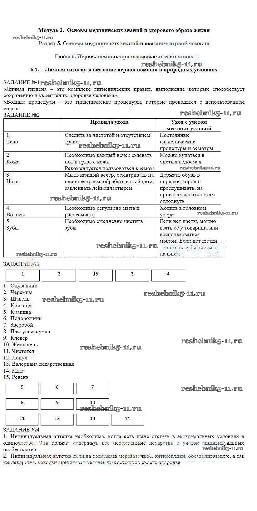 Готовая домашняя работа с ответами по ОБЖ за 6 класс Смирнов, Хренников Рабочая тетрадь Просвещение 2016 ФГОС - Глава 6 6.1