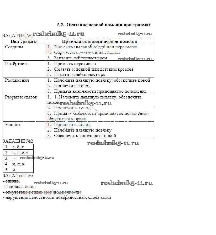 Готовая домашняя работа с ответами по ОБЖ за 6 класс Смирнов, Хренников Рабочая тетрадь Просвещение 2016 ФГОС - Глава 6 6.2