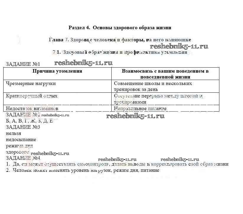 ОБЖ за 6 класс Смирнов Рабочая тетрадь Просвещение глава 7 7.1