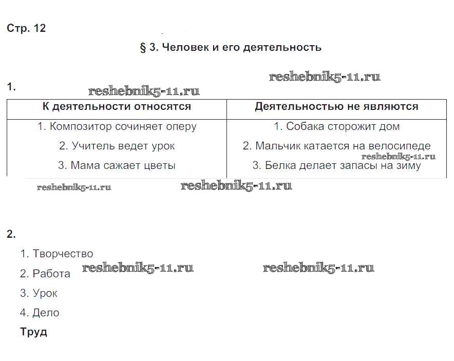 Готовая домашняя работа с ответами по Обществознанию за 6 класс Иванова, Хотеенкова Рабочая тетрадь Академический школьный учебник Просвещение 2012 ФГОС - Глава-1. Параграфы 1-5 стр. 12