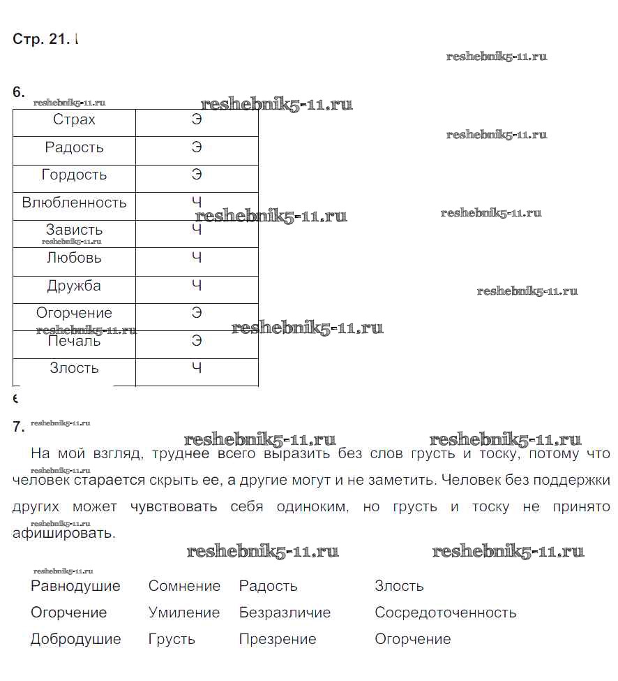 Готовая домашняя работа с ответами по Обществознанию за 6 класс Иванова, Хотеенкова Рабочая тетрадь Академический школьный учебник Просвещение 2012 ФГОС - Глава-1. Параграфы 1-5 стр. 21