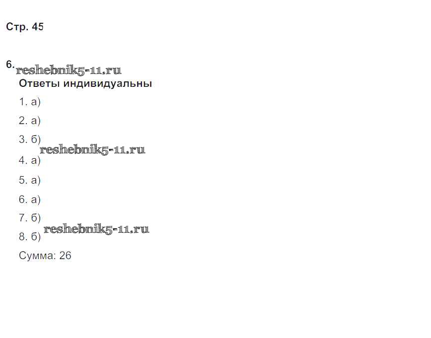 Готовая домашняя работа с ответами по Обществознанию за 6 класс Иванова, Хотеенкова Рабочая тетрадь Академический школьный учебник Просвещение 2012 ФГОС - Глава-2. Параграфы 6-9 стр. 45