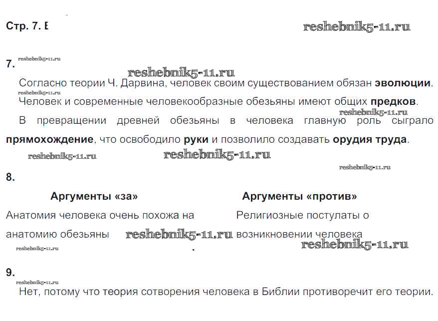 Готовая домашняя работа с ответами по Обществознанию за 6 класс Соболева Рабочая тетрадь УМК Вентана-граф 2019 ФГОС - § 1. Происхождение человека стр. 7