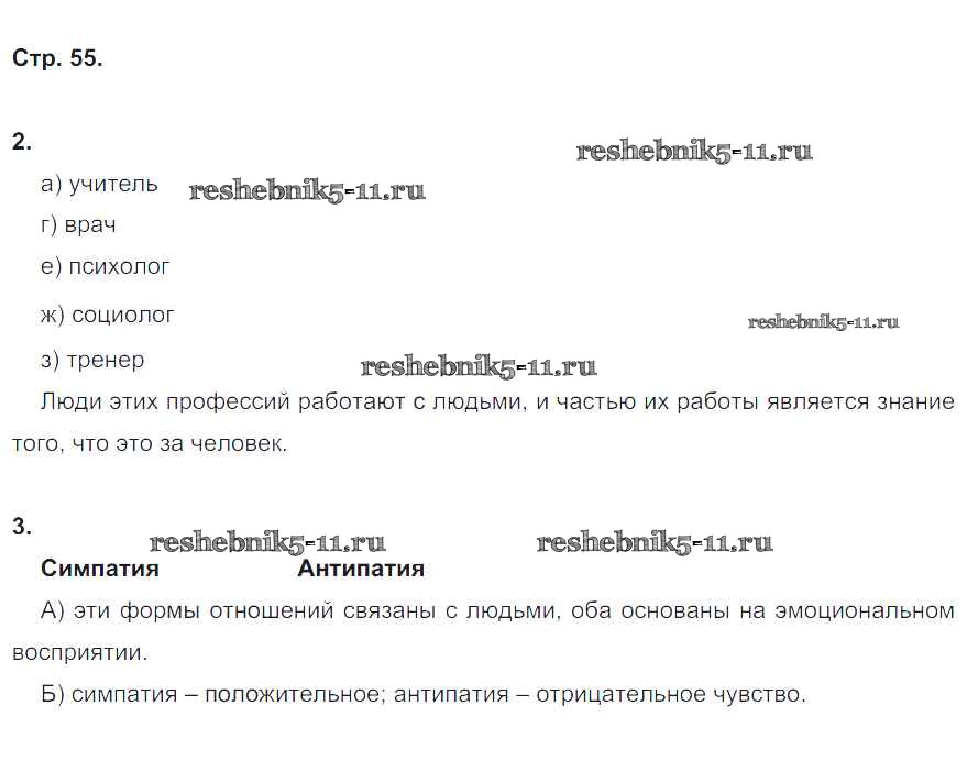 Готовая домашняя работа с ответами по Обществознанию за 6 класс Соболева Рабочая тетрадь УМК Вентана-граф 2019 ФГОС - § 16-17. Отношения между людьми стр. 55