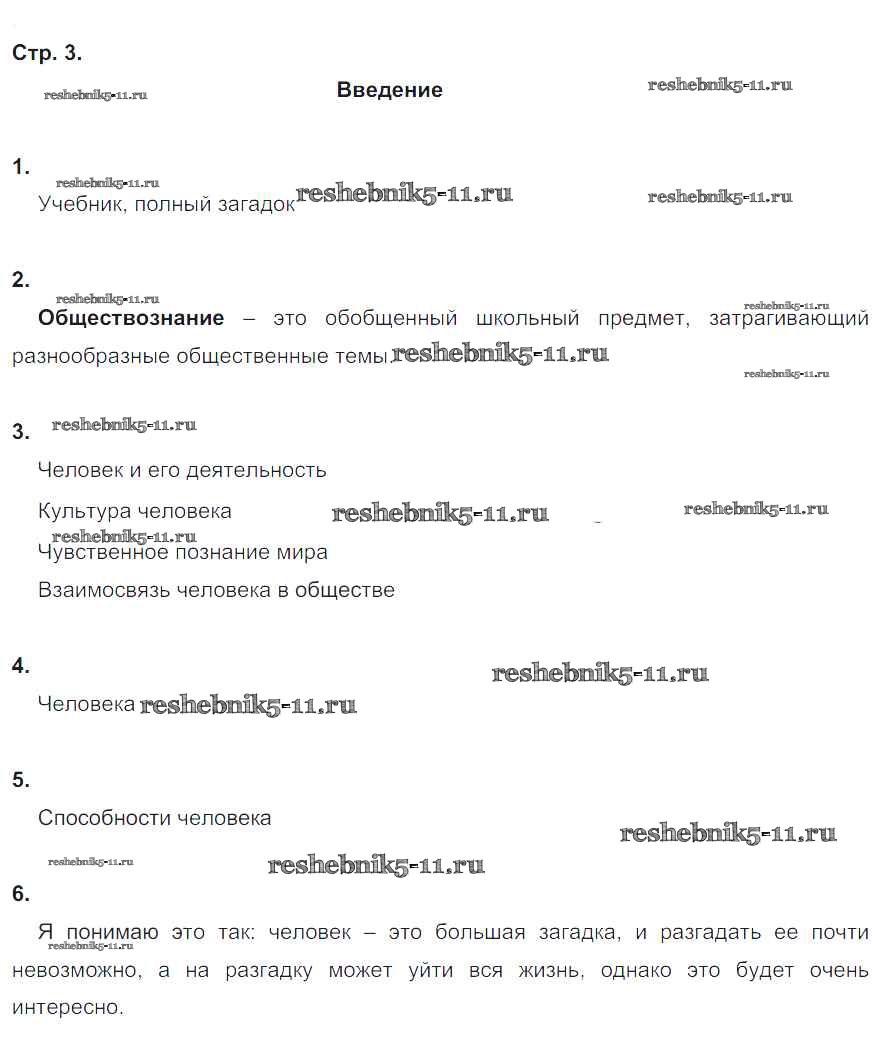 Готовая домашняя работа с ответами по Обществознанию за 6 класс Соболева Рабочая тетрадь УМК Вентана-граф 2019 ФГОС - Введение стр. 3