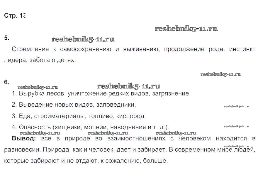 Готовая домашняя работа с ответами по Обществознанию за 6 класс Соболева Рабочая тетрадь УМК Вентана-граф 2019 ФГОС - § 3. В гармонии с природой стр. 13