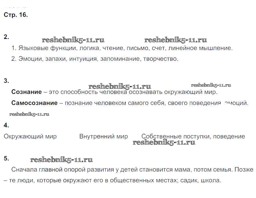 Готовая домашняя работа с ответами по Обществознанию за 6 класс Соболева Рабочая тетрадь УМК Вентана-граф 2019 ФГОС - § 4. Путешествие в мир сознания стр. 16