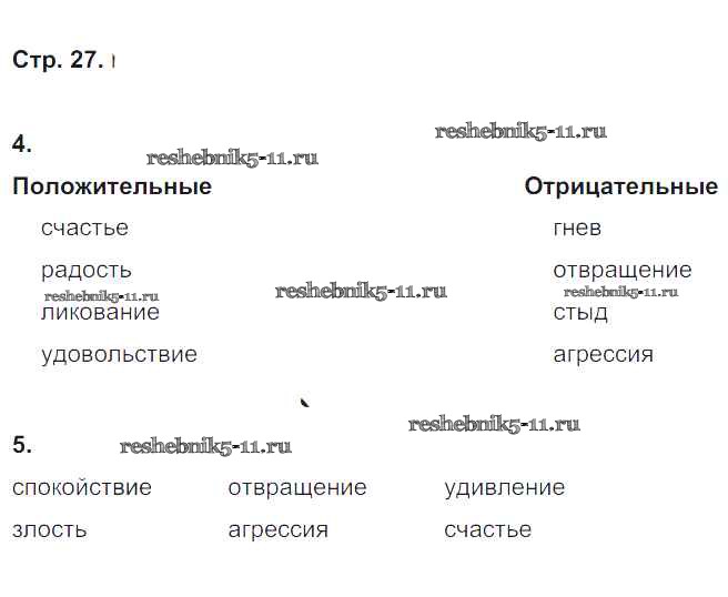Готовая домашняя работа с ответами по Обществознанию за 6 класс Соболева Рабочая тетрадь УМК Вентана-граф 2019 ФГОС - § 7. Эмоции стр. 27