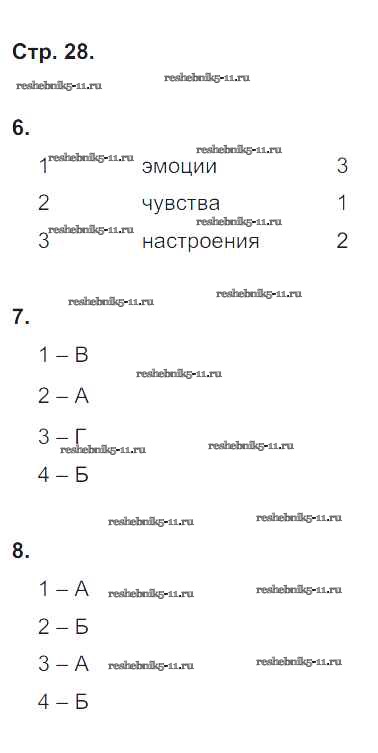 Готовая домашняя работа с ответами по Обществознанию за 6 класс Соболева Рабочая тетрадь УМК Вентана-граф 2019 ФГОС - § 7. Эмоции стр. 28