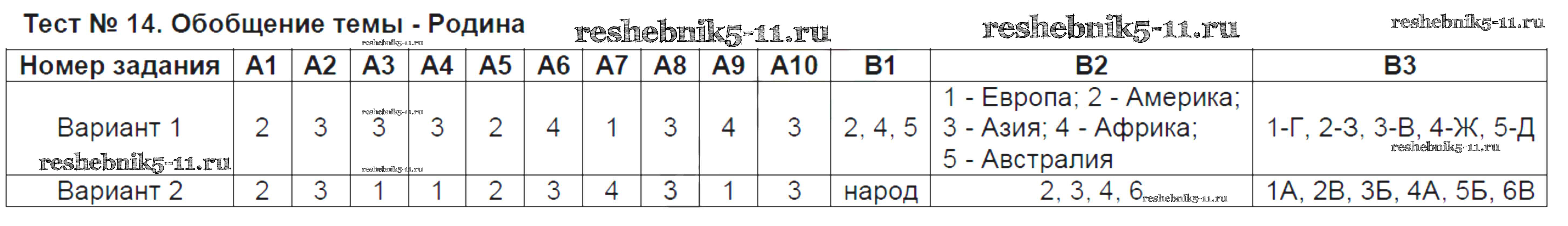 Готовая домашняя работа с ответами по Обществознанию за 6 класс Поздеева Контрольно-измерительные материалы (КИМ) ВАКО 2017 ФГОС - Тесты Тест №14. Обобщение темы - Родина