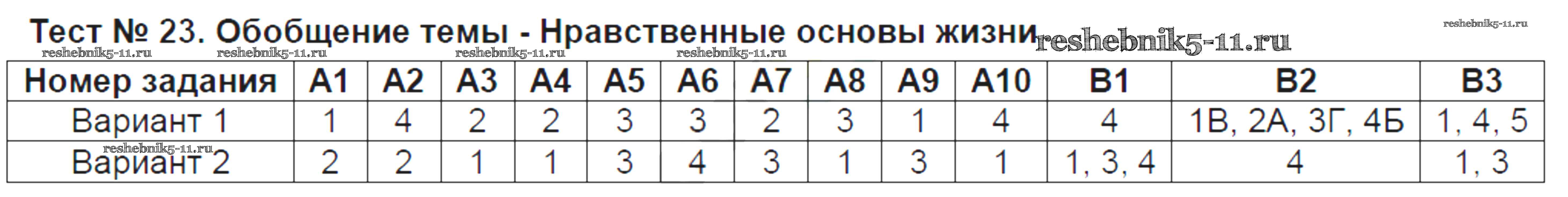 Решебник / тест / тест №23. обобщение темы - нравственные основы жизни