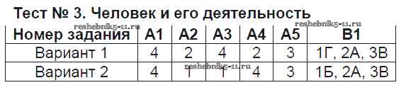 Готовая домашняя работа с ответами по Обществознанию за 6 класс Поздеева Контрольно-измерительные материалы (КИМ) ВАКО 2017 ФГОС - Тесты Тест №3. Человек и его деятельность