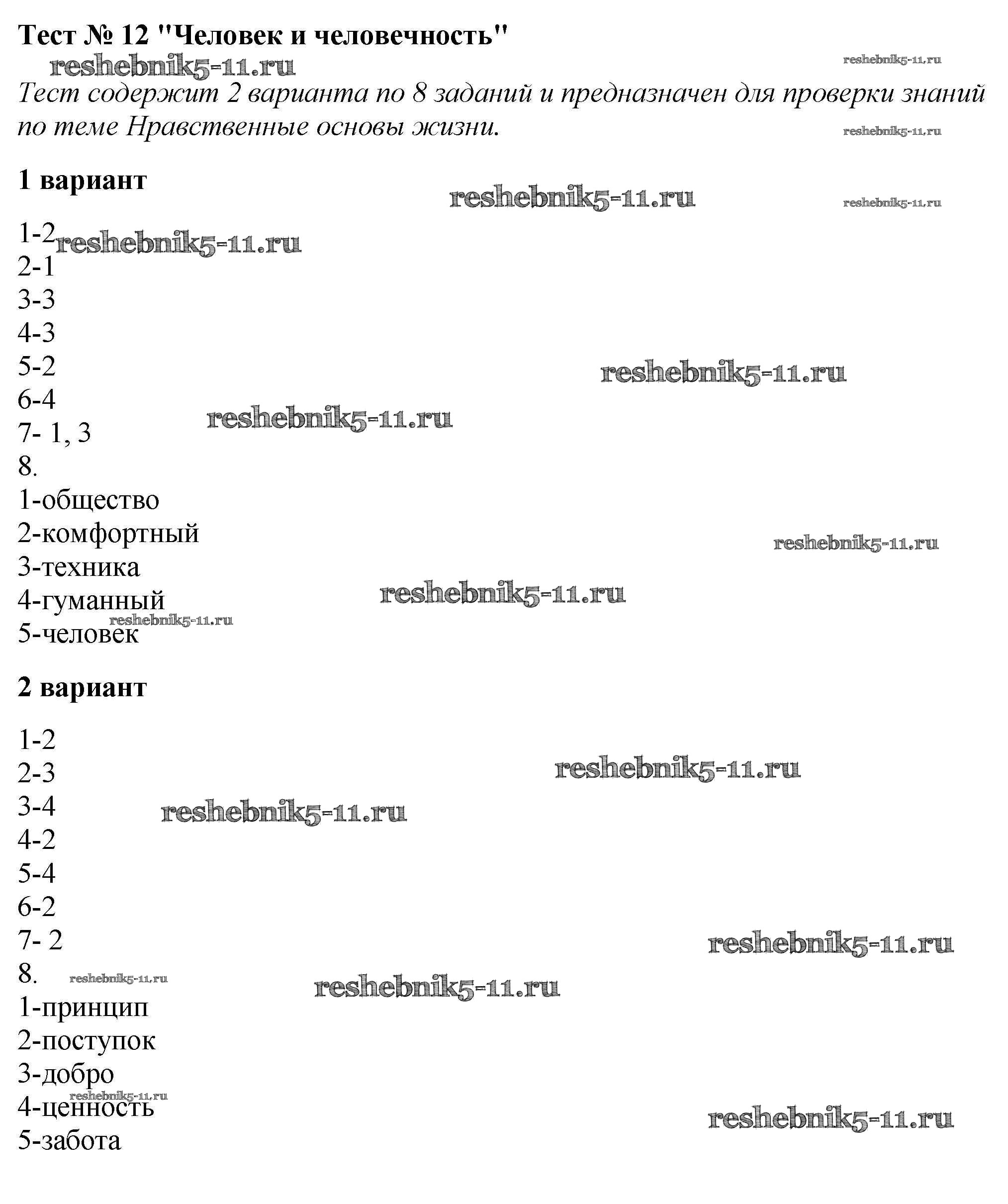 Решебник №2 / тест / тест №12. человек и человечность